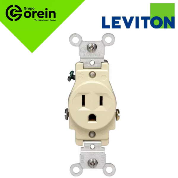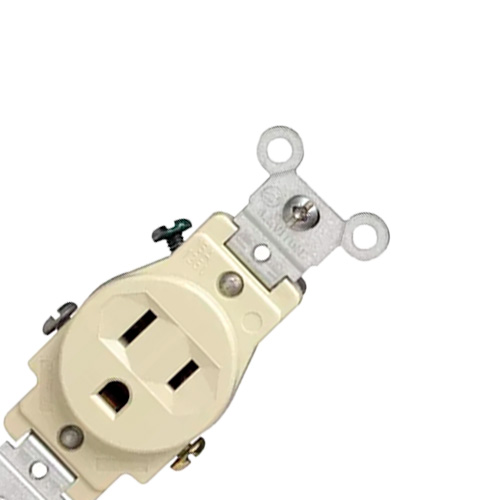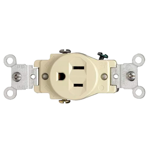 Tomacorriente individual, grado comercial, superficie lisa, 15 A, 125 V, cableado lateral, NEMA 5-15R, 2 polos, 3 cables, conexión a tierra automática – Marfil